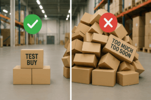 But here’s where many new sellers make a mistake: they see success and immediately start ordering new products — often too fast, too big, and too soon.